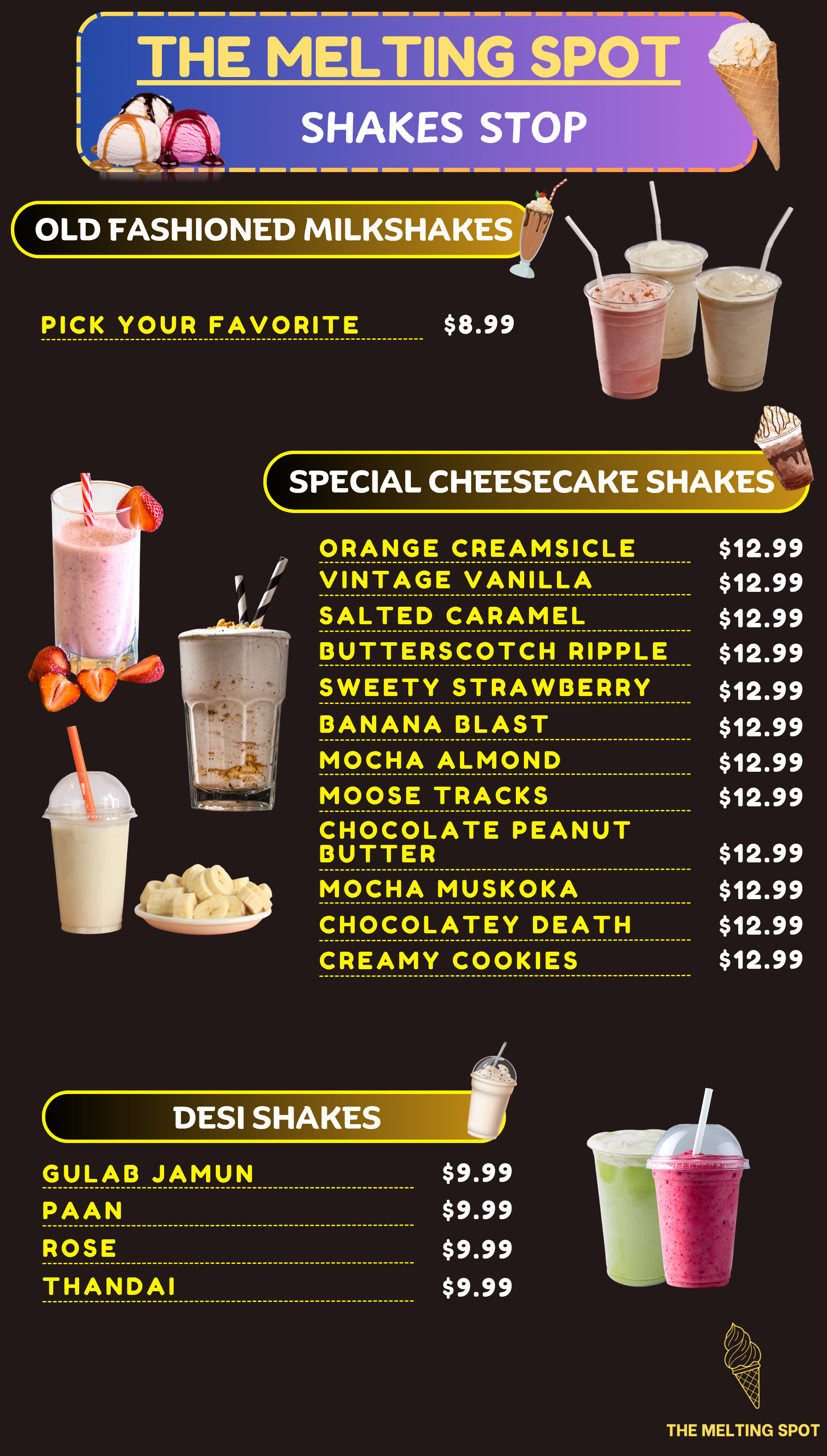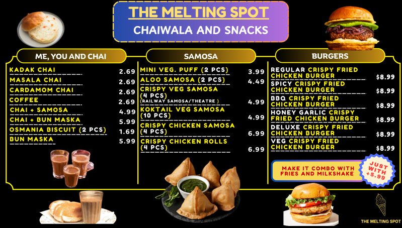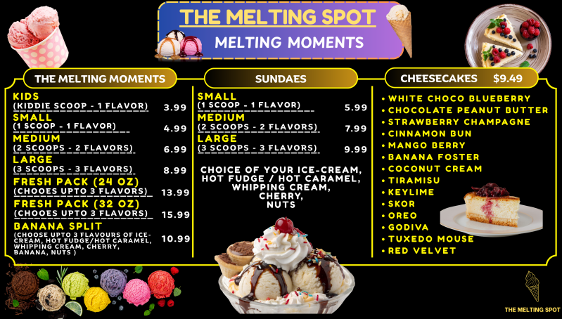 Welcome to THE MELTING SPOT's menu, where culinary artistry meets irresistible flavors. We're passionate about creating dishes that not only taste amazing but also tell a story. Each item is crafted with the finest ingredients, ensuring a memorable dining experience. Get ready to explore a world of taste sensations designed to leave you hungry for more.